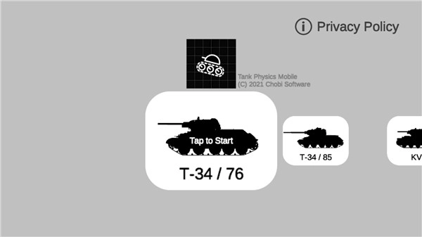 1、在本站下载并安装坦克物理模拟器,进入游戏后有四款坦克可供选择