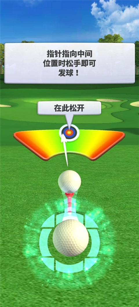 2、指针指向中间位置时松手即可发球,在此松开