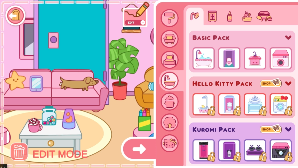 你是否曾幻想过打造一个超级可爱的家?在Hello Kitty和它的朋友们的世界里,你能够建造并装饰各式各样的主题房屋,像Hello Kitty的家、酷洛米的家、布丁狗的家……还有洋溢着节日氛围的圣诞小屋或是惊险刺激的万圣小屋——你可以按照自己的心意随意搭配组合!
