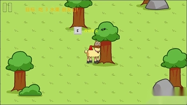 第一个水果朋友在这个石头这,我们需要找到蜂窝来让他出来。
