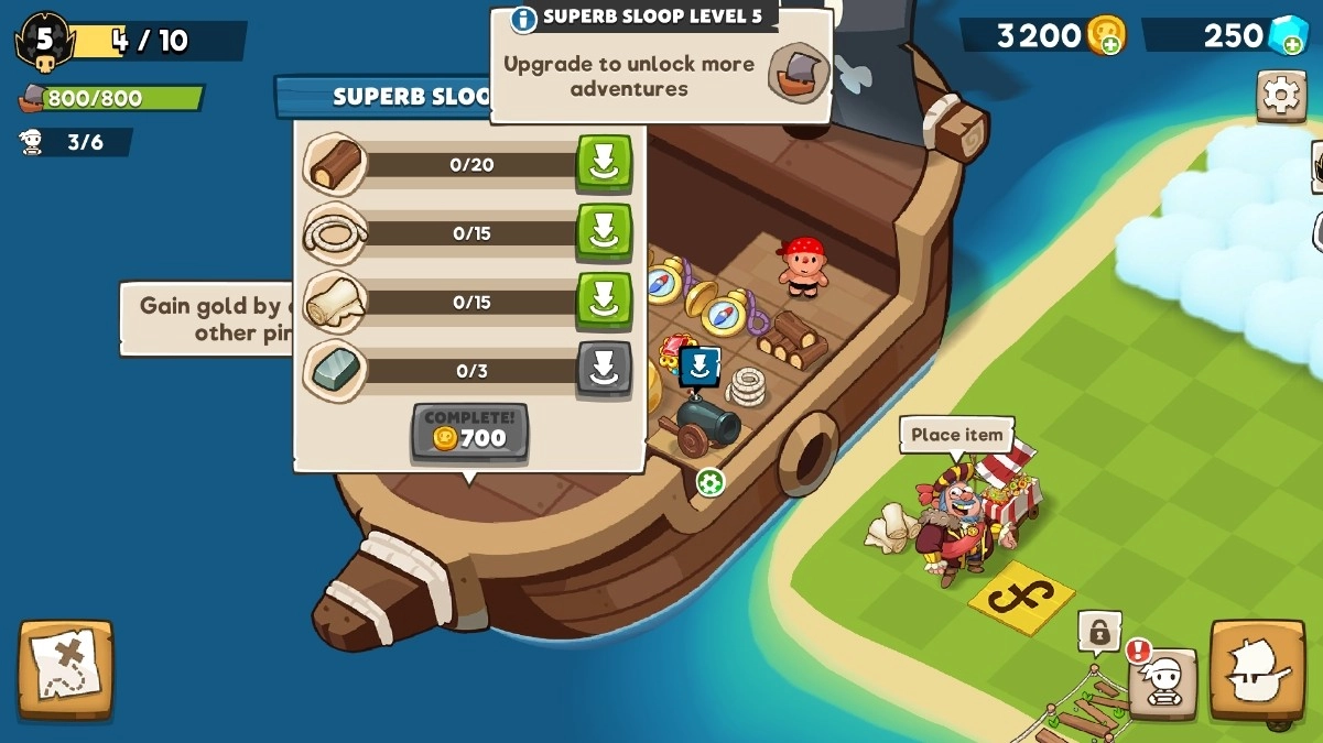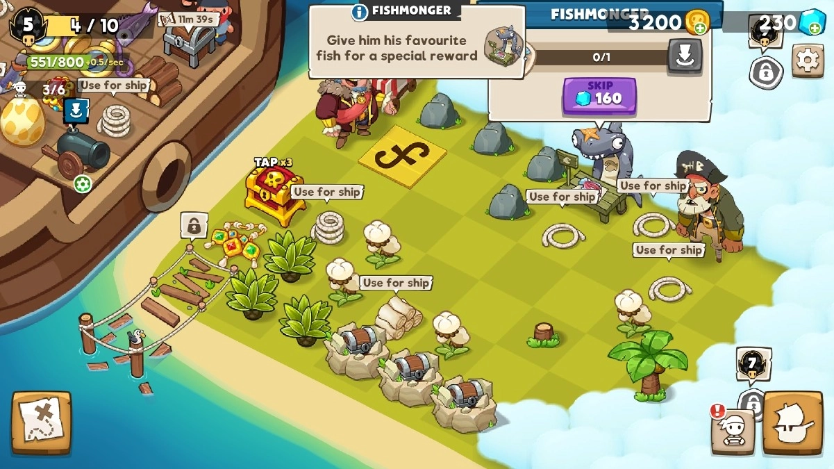 玩家能够借助收集战利品与宝箱来升级海盗装备,增强船只性能并提升船员技能,从而打造出独属于自己的强大海盗舰队。