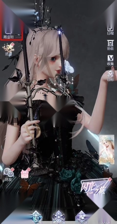1、打开游戏,游戏内如图,点击左侧商业街,或者上方钻石旁的+号;
