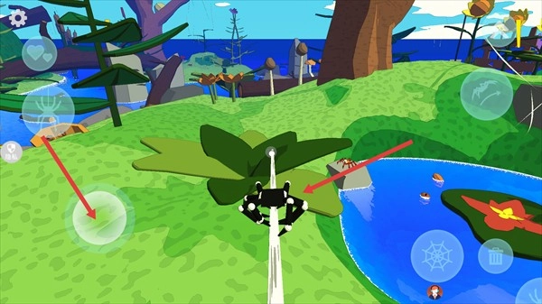 3、在蜘蛛与目的地直接结成蛛丝后,点击左下角的摇杆控制蜘蛛移动方向。