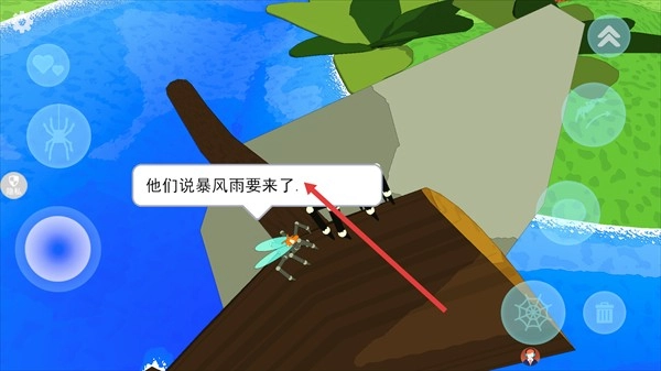 4、在游戏场景中遇到其他动物时,可点击出现的对话提示(例如【他们说暴风雨要来了。】),以此获取剧情相关信息,帮助推进游戏进程。