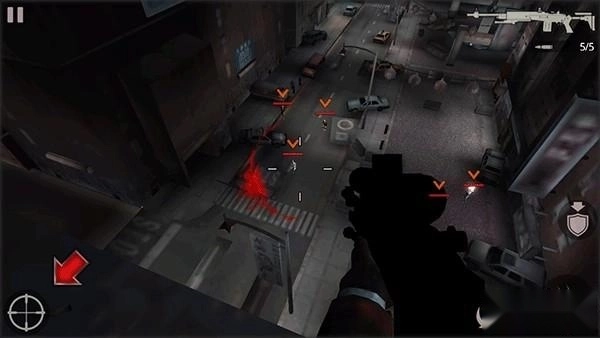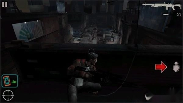 1、安装《杀手2:影子阴谋》,游戏开始时你会处于天台场景,且角色处于掩护状态。点击右侧的盾牌箭头图标,主角就会起身离开掩护位置。