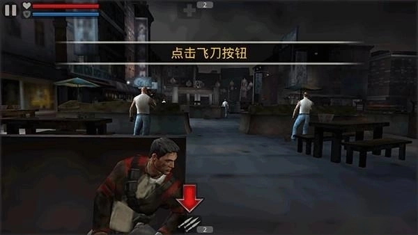 5、当生命值回满后,系统会提示使用飞刀的技巧。飞刀属于消耗品,价格相对较高,但威力十分强劲。只需点击目标敌人,投掷一把飞刀就能将其击倒,其效果甚至比机枪还要出色。