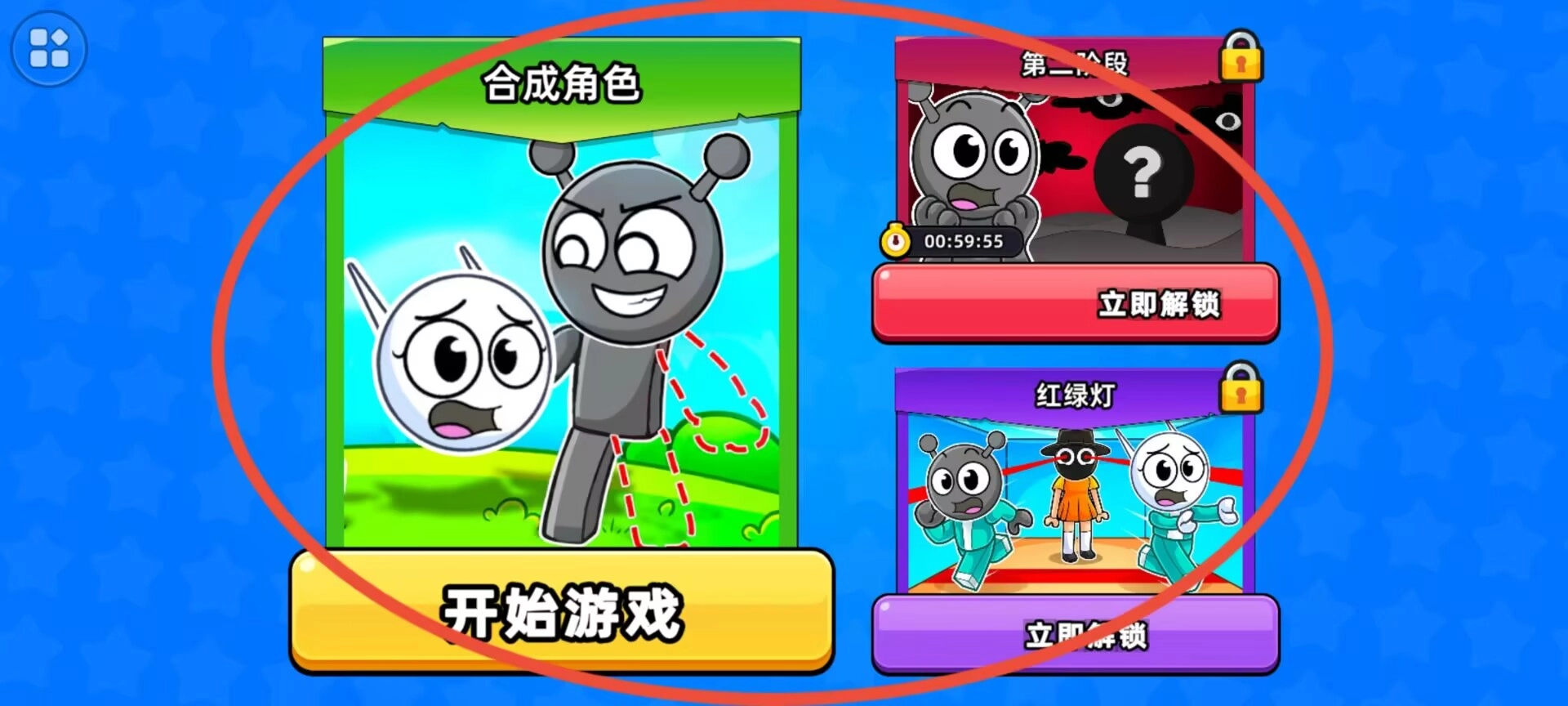 1、游戏初始提供三种模式选项,其中两项需达成条件解锁,基础模式支持角色合成玩法。