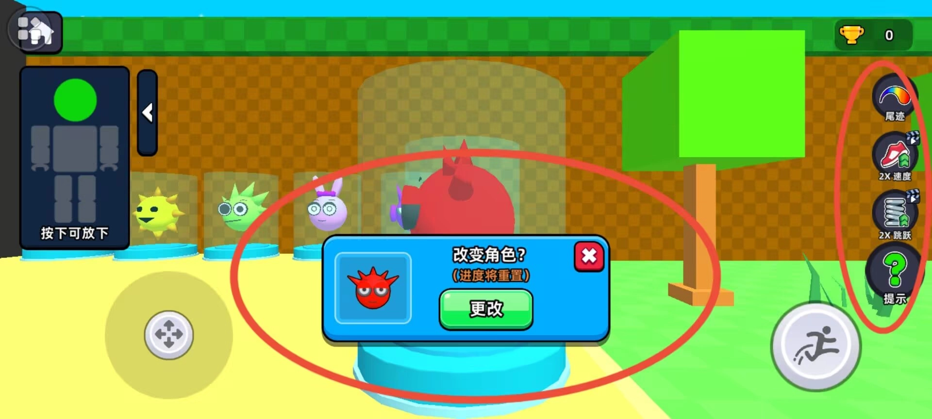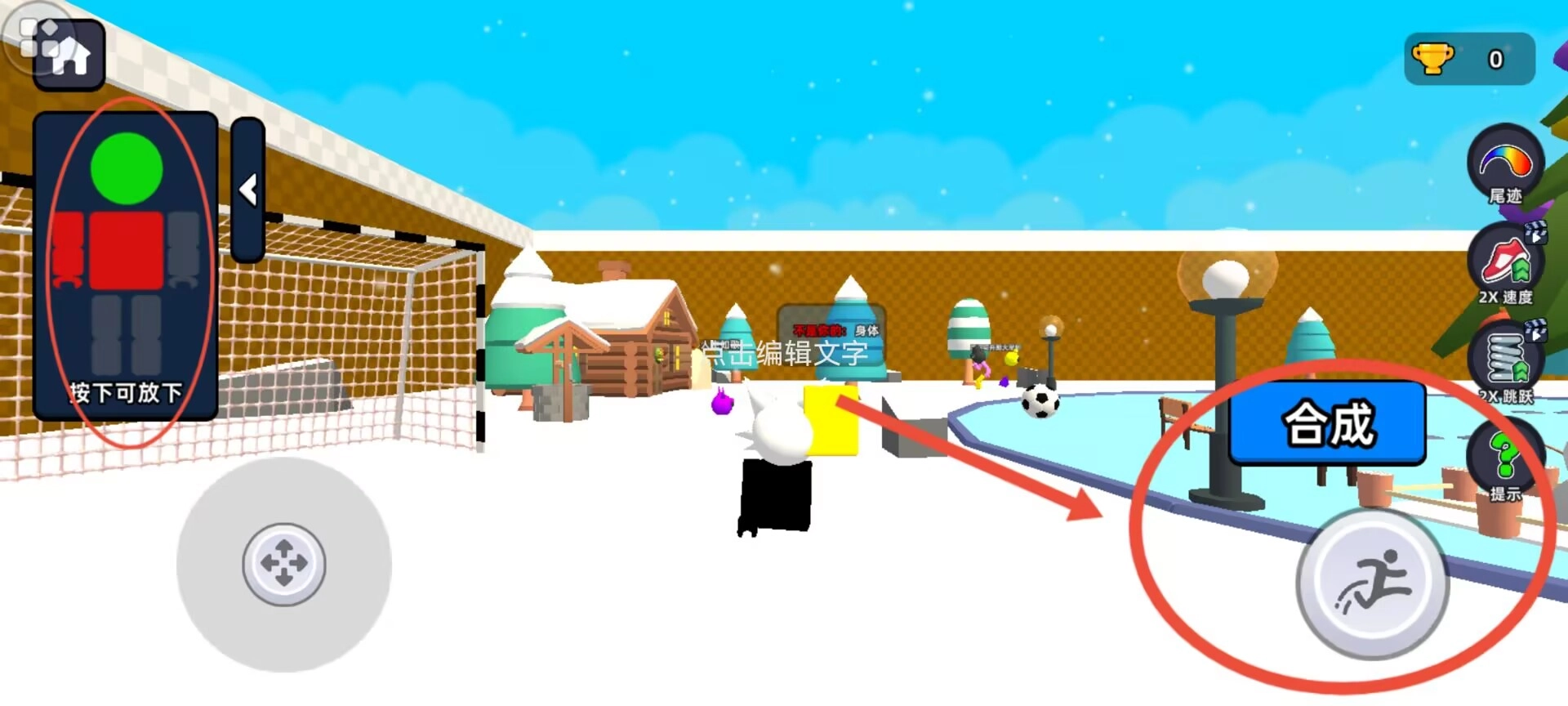 2、界面右侧展示目标角色模板,遭遇匹配部件可进行组合操作,底部设有移动与跳跃功能按键。