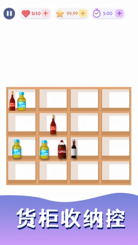收纳消消乐是一款整理收纳类游戏,玩家需要把货柜中的零食、饮料和水果进行分类,只要在同一层放置三个相同的物品就能消除,从而让货柜变得干净整洁。玩家通过拖动货物到合适的货架位置,完成相应的闯关任务。