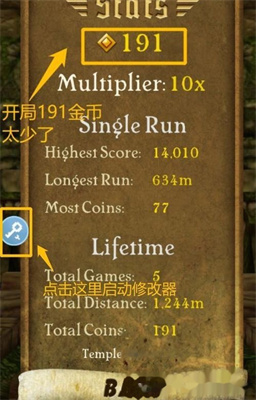 4、进入游戏后,比如说是“神庙逃亡”,那我们现在看到我们的金币有191个,那我们就首先点击屏幕左侧的八门神器的图标,在搜素框内搜索191