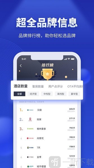 3.里面有各种酒店品牌的排行榜,可以让我们轻松的选取更多知名品牌。