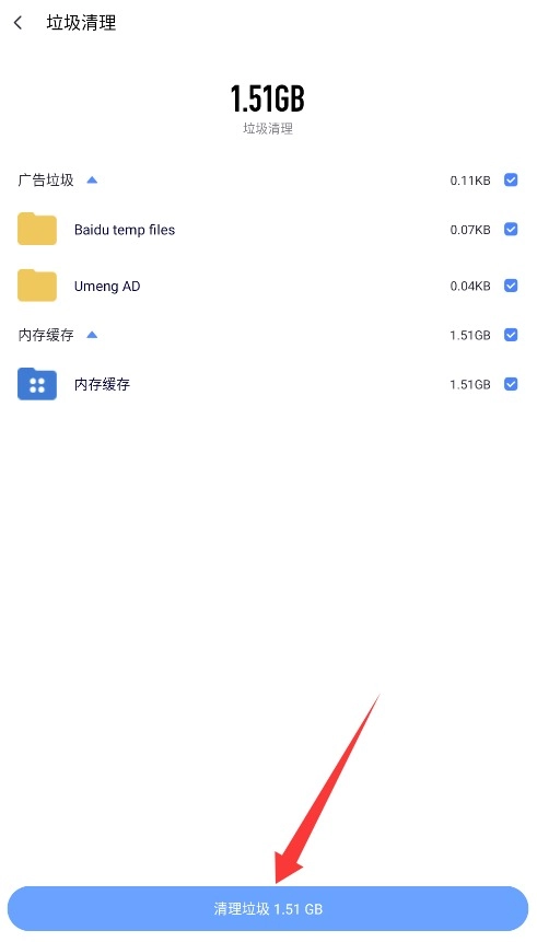 3、在扫描结果中勾选需要清理的项目,确认后点击底部清理按钮即可完成存储空间优化。