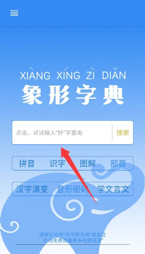 2、在首页顶部搜索栏输入需要查询的汉字,系统将自动显示相关字形演变及构造解析。