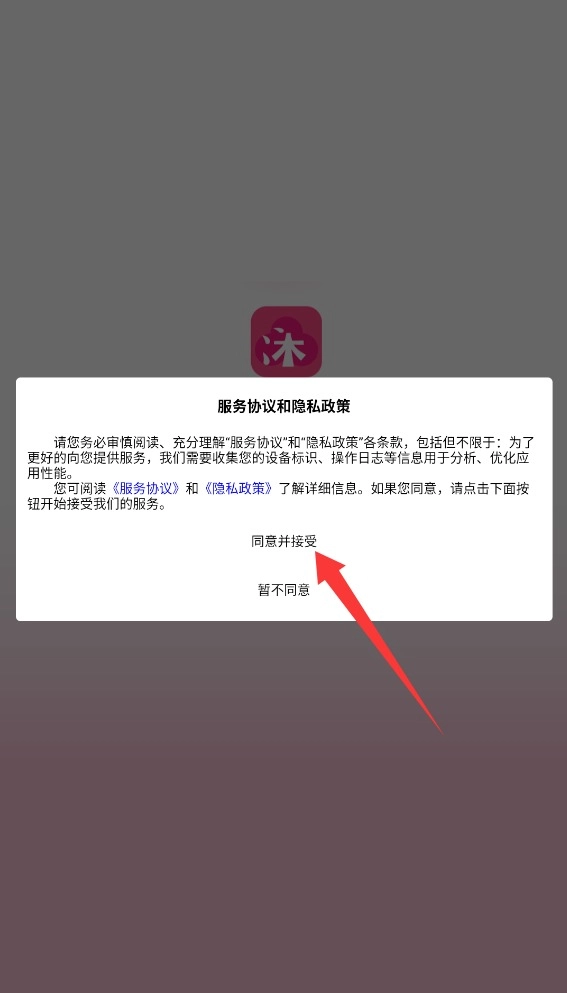 1. 初次打开沐沐悦读时,会弹出隐私协议页面。需仔细阅读该协议,而后点击页面底部的“同意并继续”按钮,方可正常使用各项功能。