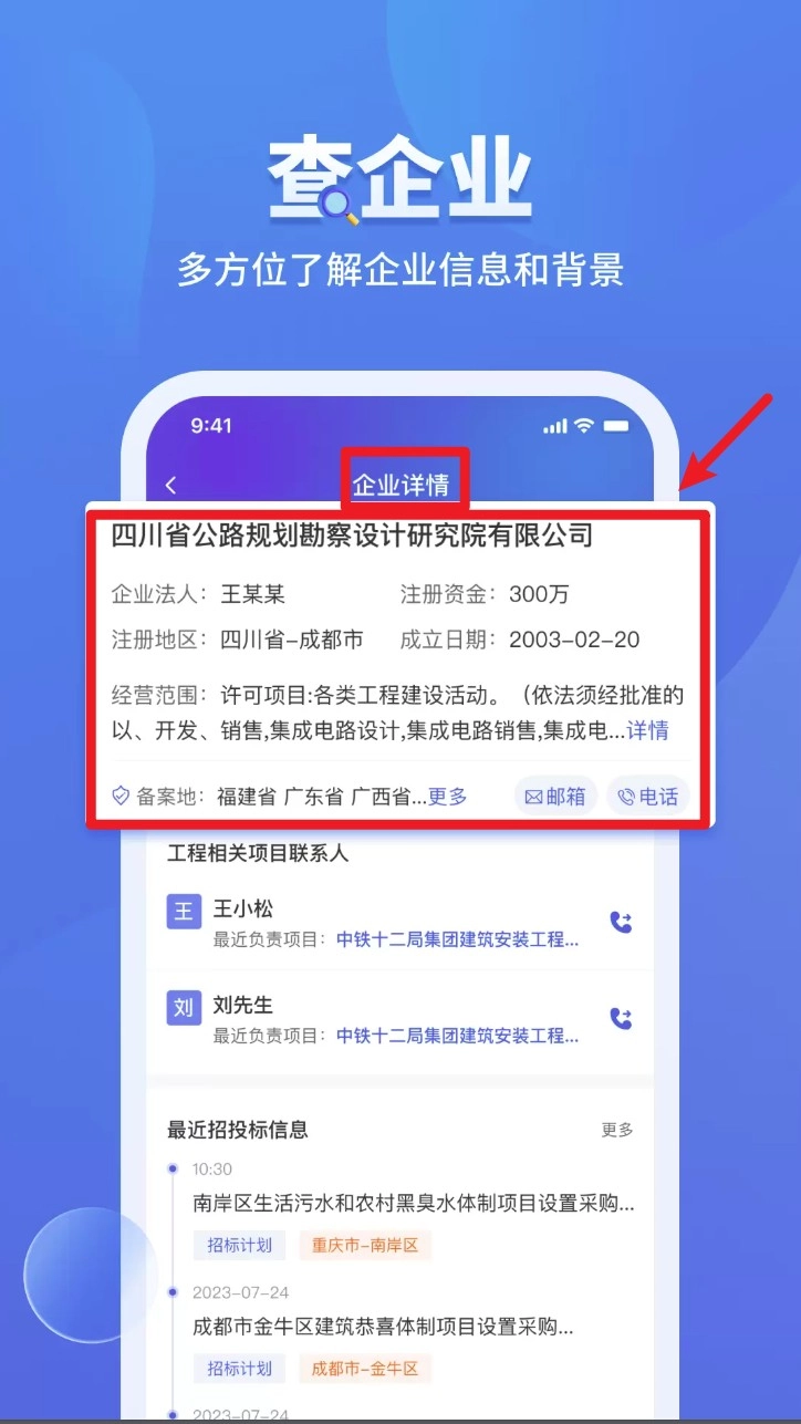 4. 工程项目众多,需要查询不同包商时,使用它能一次性清晰了解老板背景、企业信用等级以及资质年限,效率超高。