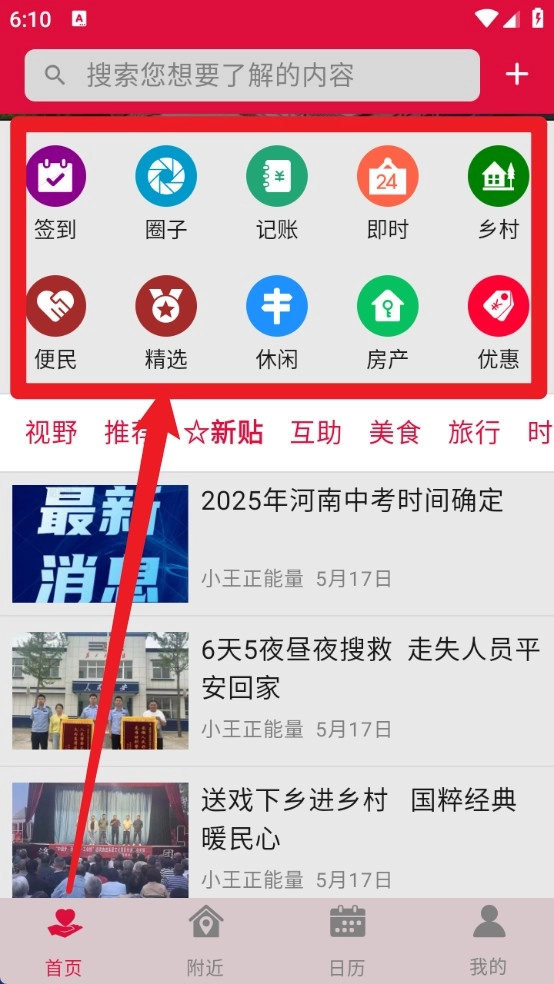 1、点击首页搜索框,可快速查找您想了解的本地资讯。