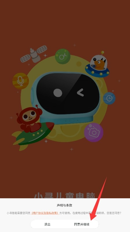 1. 首次打开时,会呈现用户协议页面。认真阅读完毕后,点击“同意并继续”按钮,即可进入主界面。