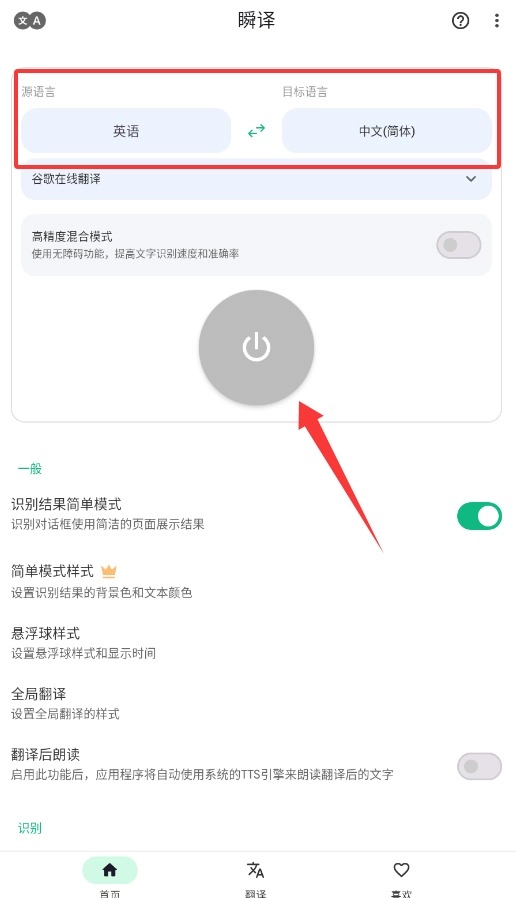 1、首次使用建议调整悬浮球透明度,设置常用语言组合。权限管理中开启截图功能。