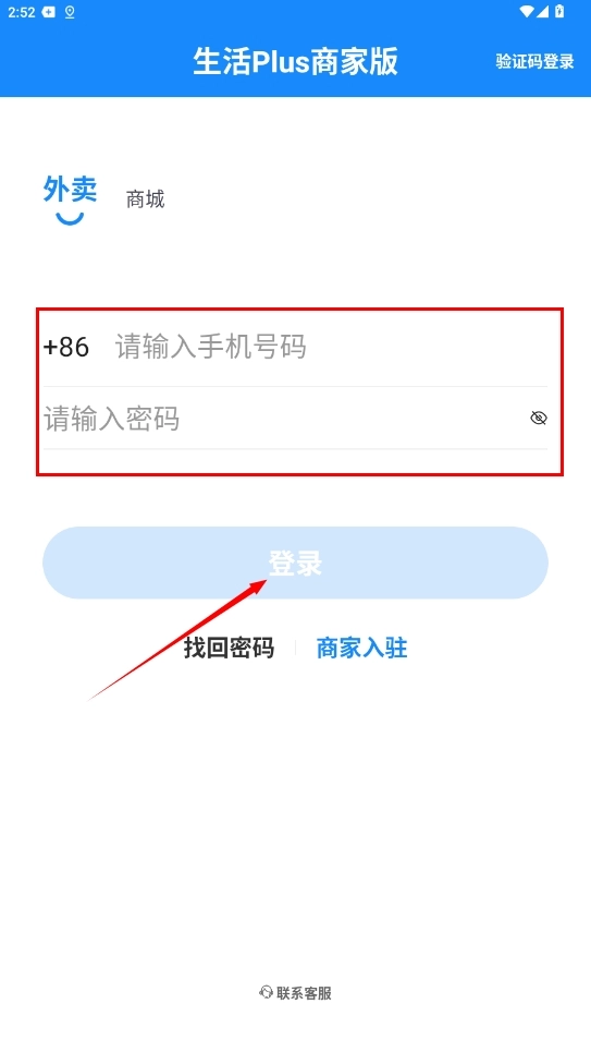 2、在登录界面输入注册手机号,可选择密码或短信验证码任一方式完成身份验证。