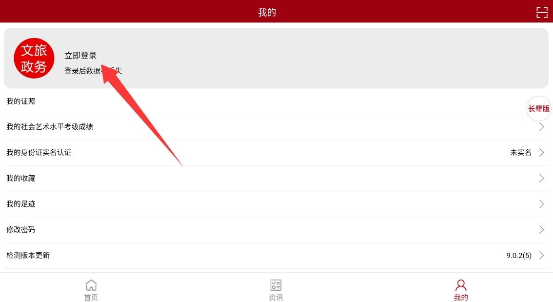 1. 开启文旅政务后,轻点底部导航栏的“我的”页面,选中“立即登录”选项,从而进入账号系统。