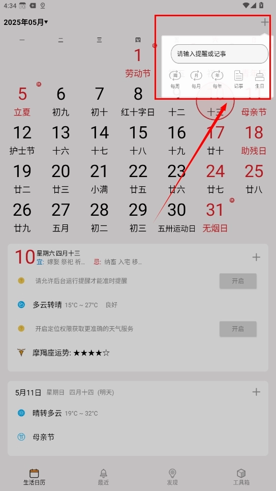 3、通过点击界面右上角的添加按钮,快速创建新的备忘事项或设置重要日程提醒。