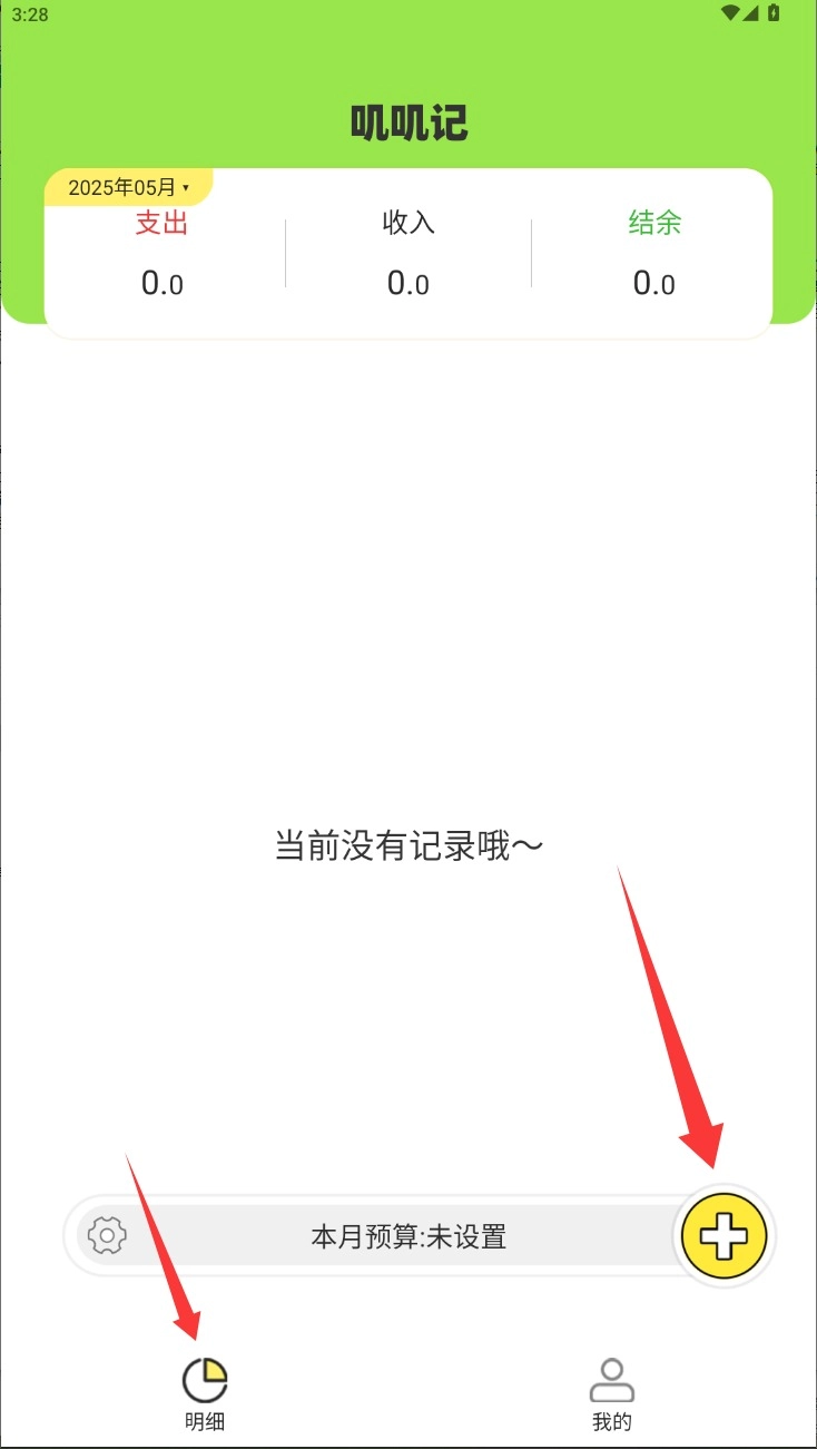3、进入记账界面后轻触底部加号按钮,选择收支类型并填写金额就能快速完成记录。