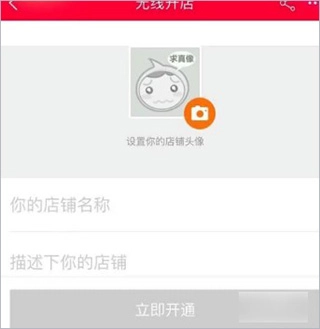 3、进入页面后,会有提示引导我们设置头像、店铺名以及描述店铺信息等内容,完成后点击“立即开通”。