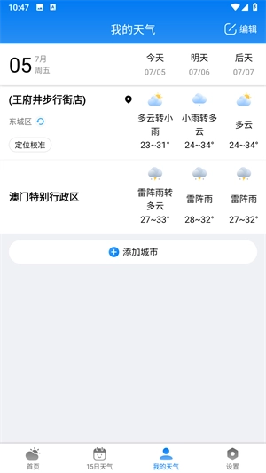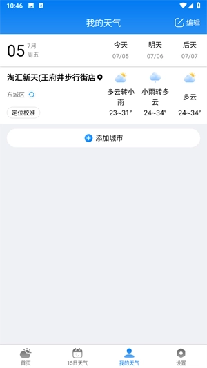 准雨天气怎么进行添加新的城市天气