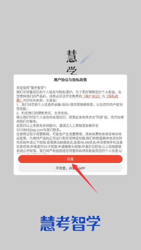 1、初次使用需阅读平台服务条款与隐私政策,确认后点击同意按钮进入应用。
