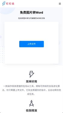 忙忙侠作为一款功能完备、使用便捷的AI工具类应用,在市场中收获众多用户的赞誉。它不但具备图像处理的强大能力,还包含文件格式转换等一系列实用工具,有效提高了工作效率。无论是日常办公场景,还是创意设计领域,忙忙侠都能助力用户更高效、更准确地达成任务。简而言之,忙忙侠是一款功能强劲且对用户极为友好的AI工具,适用于有着各类需求的用户。