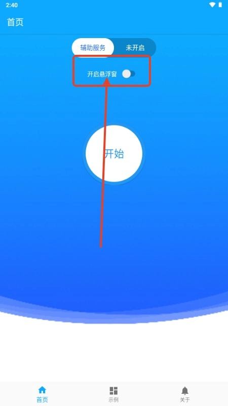 4、返回应用主界面,点击“开始”按钮以启动自动点击服务。