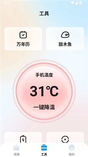 4、切换到工具界面,会为你实时显示手机当前温度