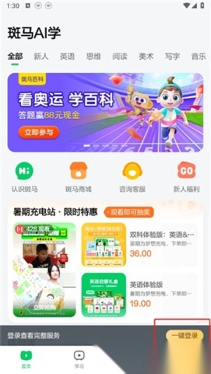 1. 第一步,打开软件。进入首页后,能看见各类功能服务,接着点击右下角的【一键登录】选项。