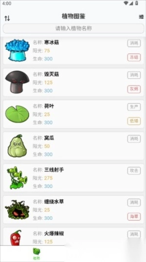 2. 打开应用后,挑选你想了解的植物或僵尸相关信息,应用里面有详尽的图鉴以及属性说明。