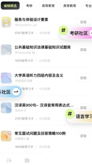 4. 用户只需直接在社区领取卡盒即可开始学习。