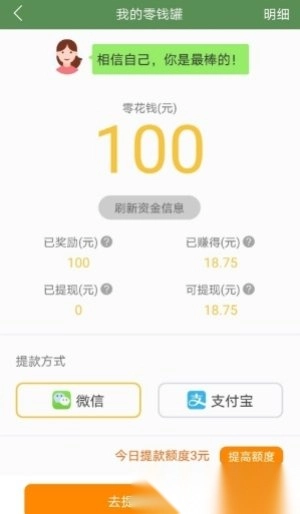 1)孩子每学习一个单词,就能赚取一元零花钱,而且还支持一键提现。这种方式能极大地激发孩子主动学习的积极性,让学习变得更加高效。