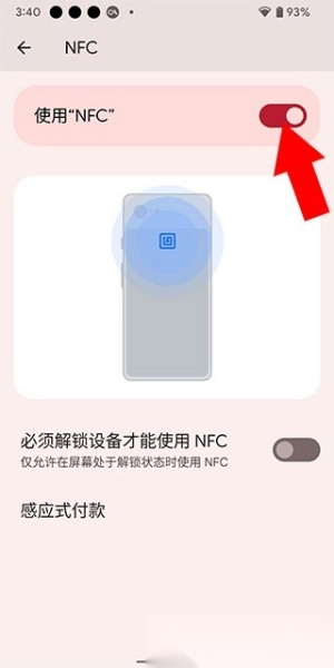 2. 使用NFC功能前,需先开启如图所示的“使用NFC”选项。
