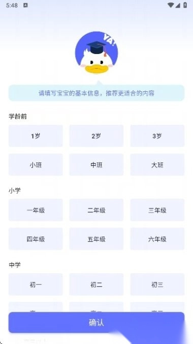 1.打开天才鸭英语后,用户首先需要先为孩子的基本信息进行填写