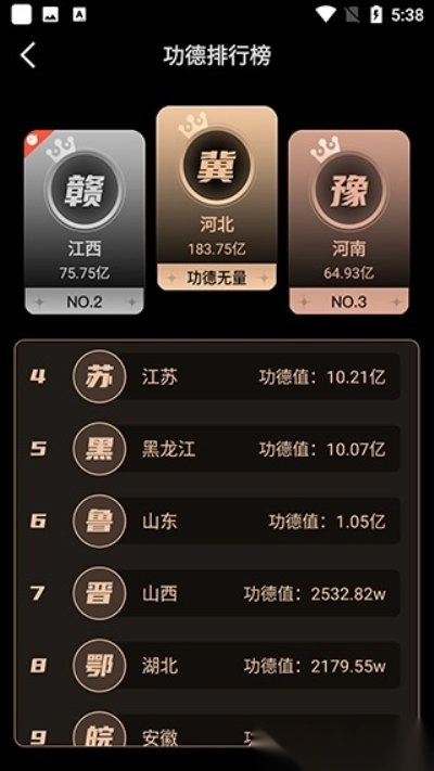 2.点击功德排行榜,即可查看全国省市的功德排行