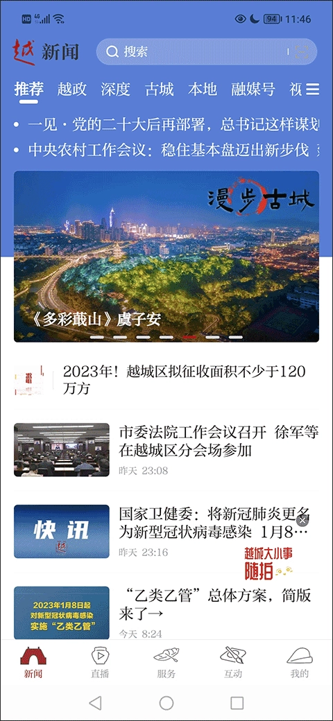 今日越城,这是一款专门为绍兴市越城区量身打造的新闻资讯类软件。在这儿,每天都会实时推送最新的本地新闻资讯。通过它,你能够及时知晓当地最新的政策变动,提前掌握即将发生的重大事件,还能深度领略当地的文化风貌。不仅如此,软件中还有诸多精彩纷呈的本地文娱活动相关信息,助力你全方位认识这座历史悠久的古城。该软件内容呈现形式丰富多样,涵盖图文、视频、直播等,消息更新十分迅速,操作使用也极为便捷。