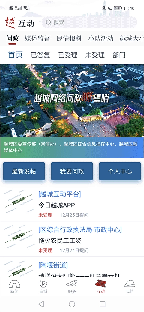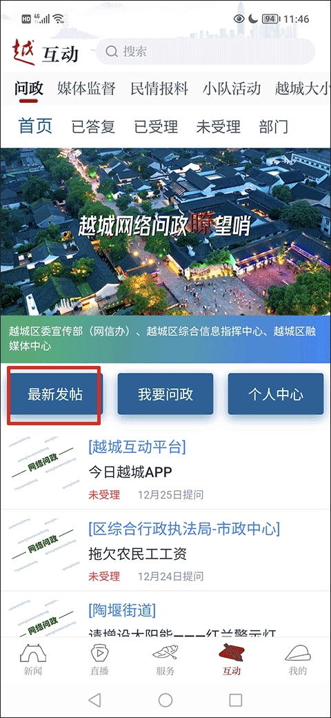 2、然后,在互动栏目中找到并点击“我要问政”按键;