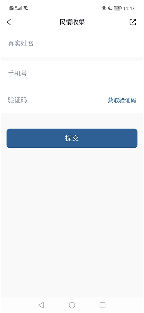 3、随后,在此处输入真实姓名与手机号,点击“获取验证码”,接着从手机短信获取验证码,并将其填入此处的验证码框内,最后点击“提交”。