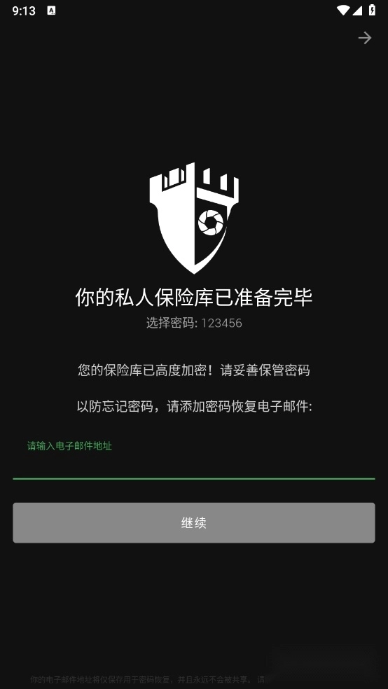 设置好私人密码以及邮箱地址