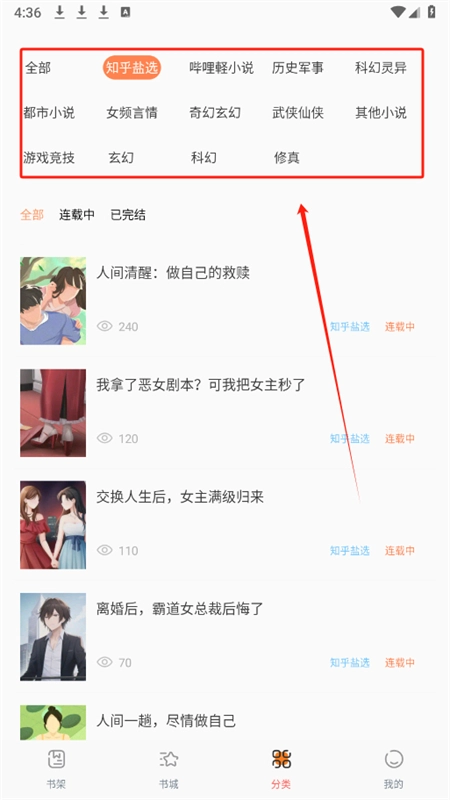 4、在分类页面,大家可以根据小说类型来选择自己喜欢的作品进行阅读