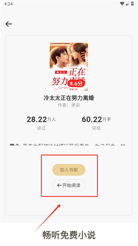 3、可以点击开始阅读,也可以加入书架