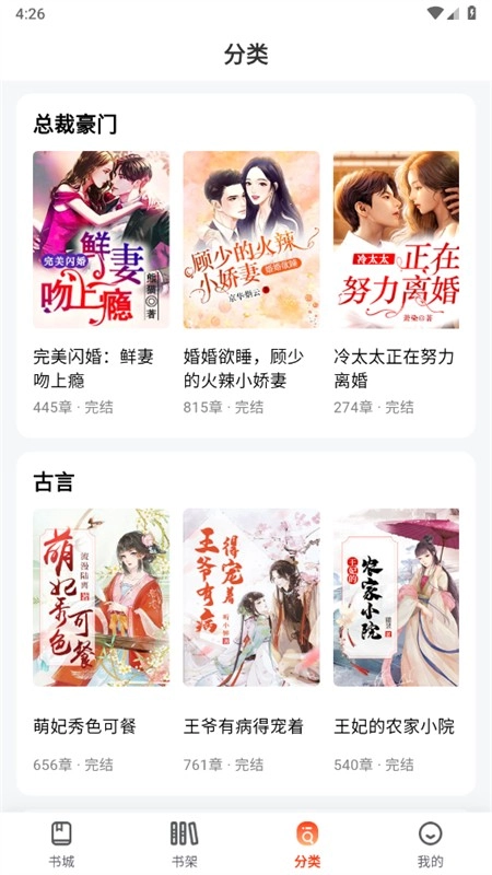 6、在分类页面,大家可以根据不同的小说类型来选书阅读