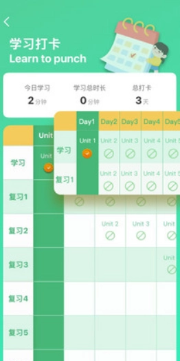 3、学霸背单词还支持用户每日打卡,培养日常学习的好习惯。