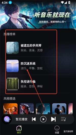 2. 打开并进入软件,于首页呈现热榜歌单内容。