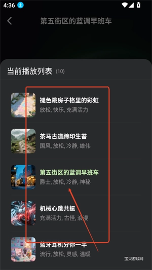 5、轻点右下角的三杠图标,便能打开播放列表,在其中可随心切换歌曲。
