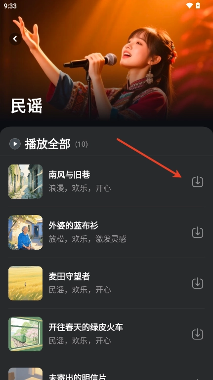 4、点击进入心仪的歌曲,接着直接点击播放即可。